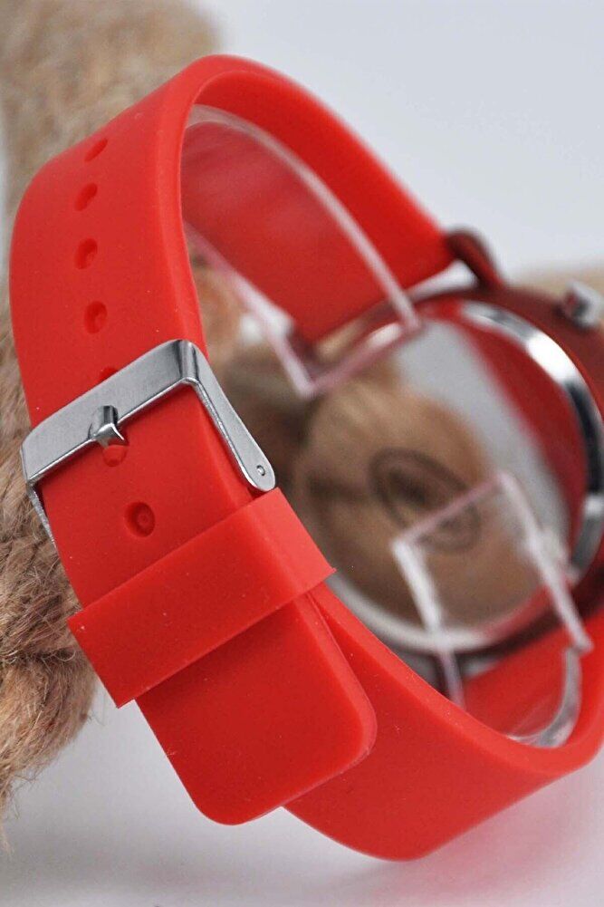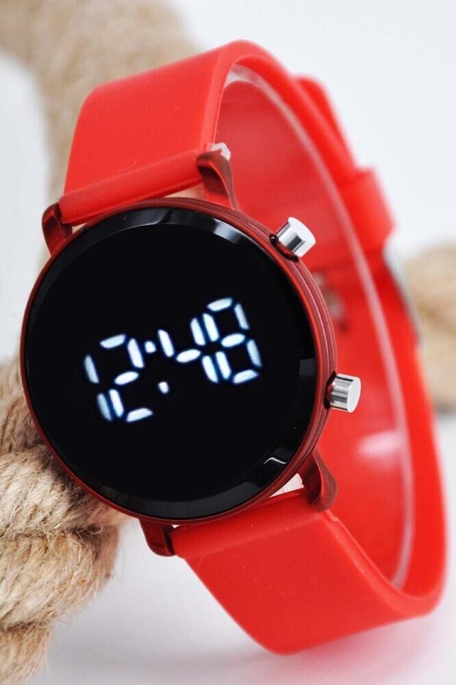 7-16 Yaş Kız Çocuk LED Dijital Kol Saati Silikon Kordonlu Işıklı Kırmızı Çocuk Saati