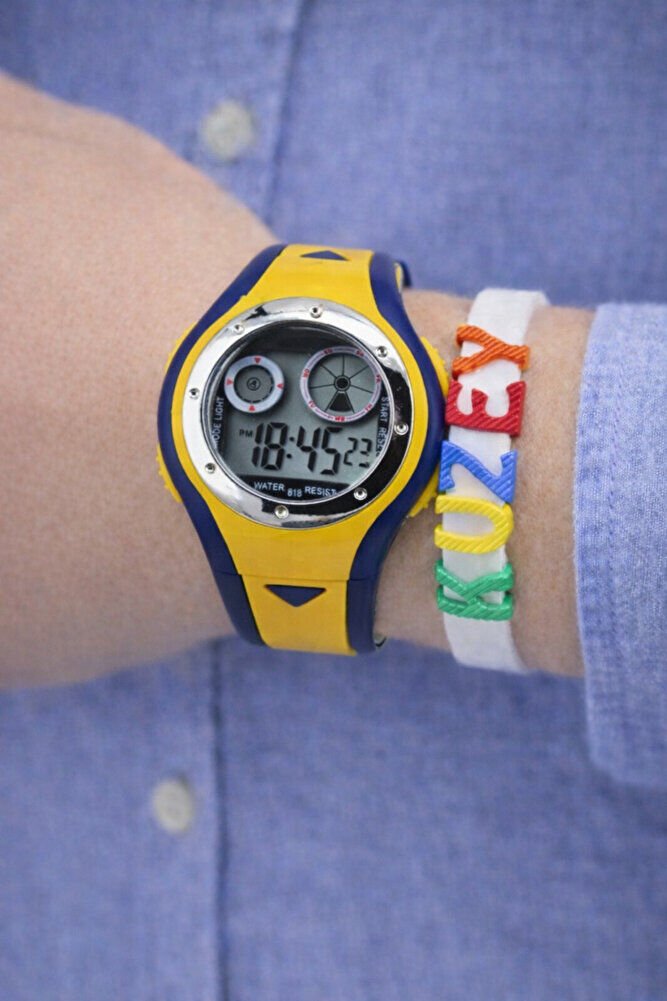Çocuk Dijital Analog Kol Saati Sarı Lacivert Silikon İsimli Bileklik Kız Erkek Çocuk Saat Seti