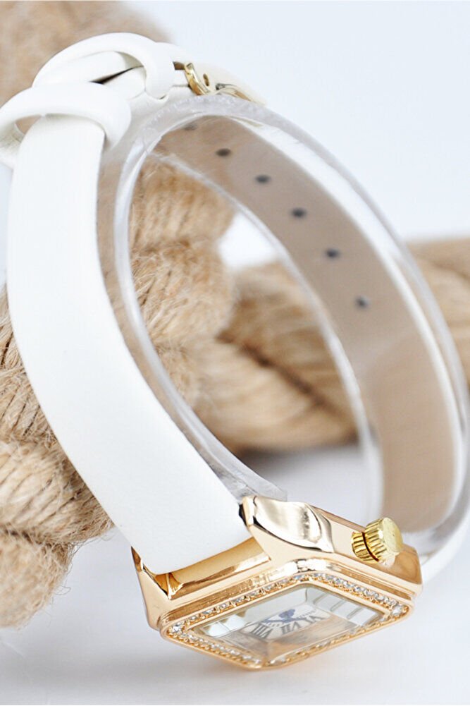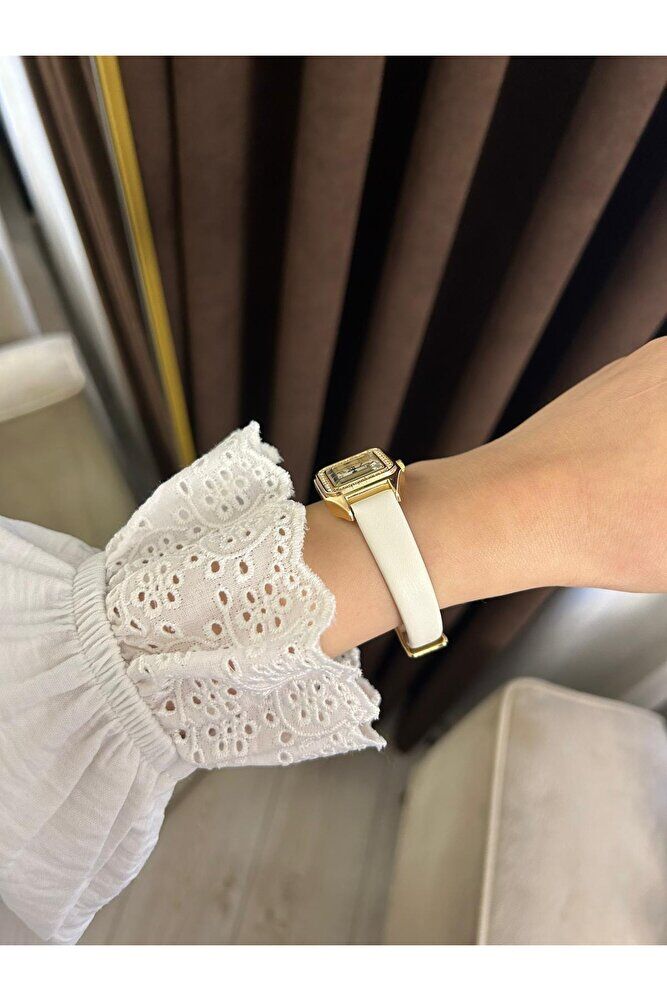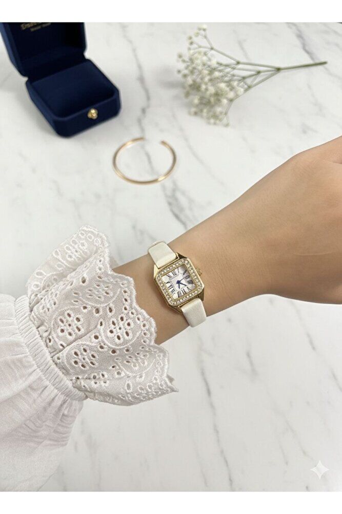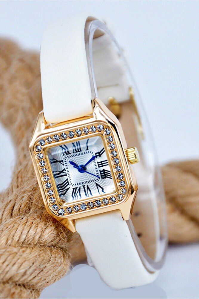 Roma Rakamlı Taşlı Kasa Beyaz Deri Kordonlu Şık Sade Kadın Kol Saati SU-890