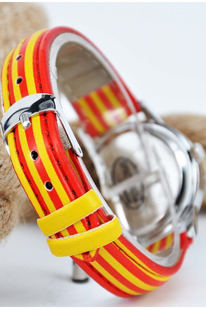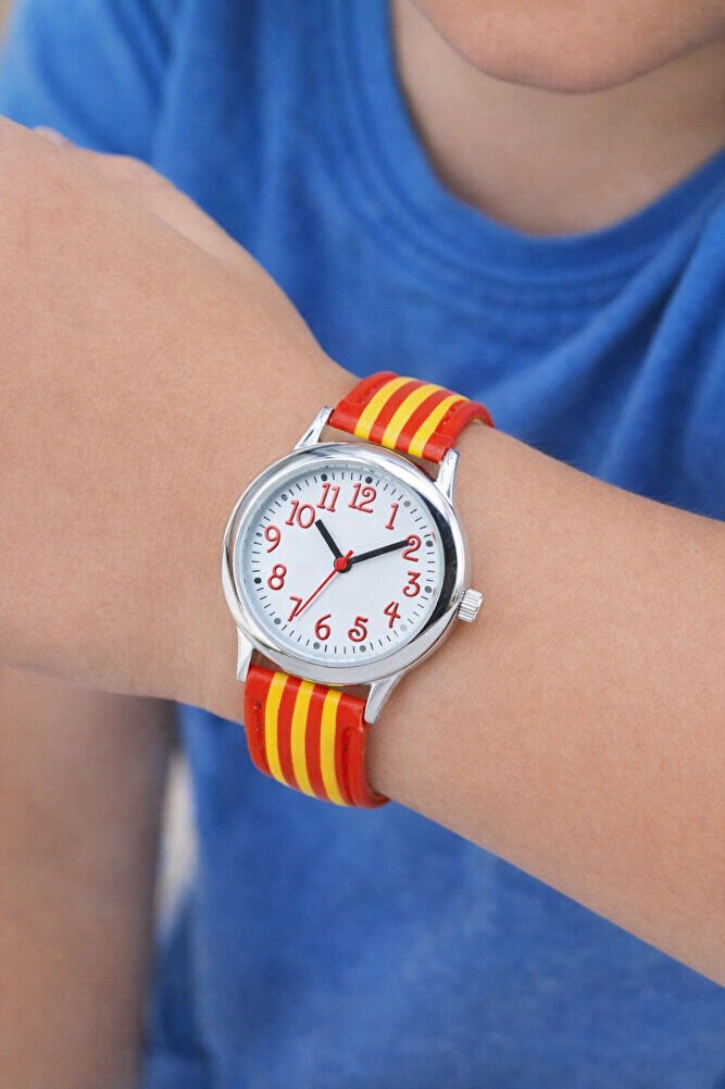Sarı Kırmızı Deri Kordonlu Analog Rakamlı Çocuk Kol Saati STA-057