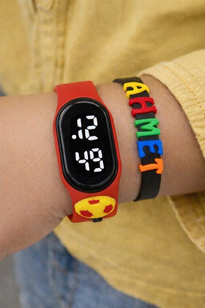 Sarı Kırmızı Top Figürlü İsimli Bileklikli Dokunmatik Led Çocuk Kol Saati